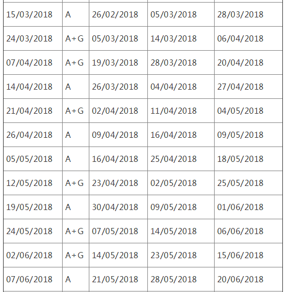 2018年1月至6月用于英国签证及移民的雅思考试报名截止日期、准考证打印日期和成绩单寄送日期