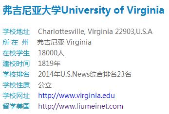 弗吉尼亚大学最新排名信息: