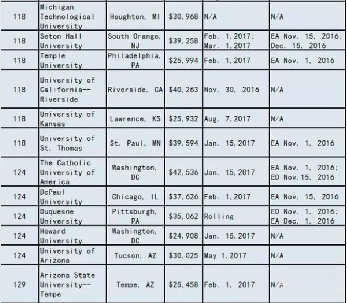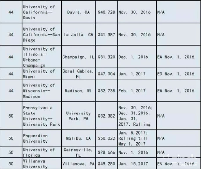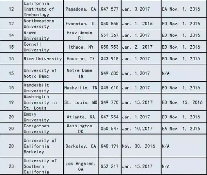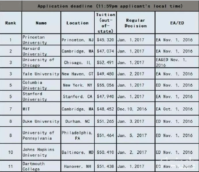2017美国大学ED/EA/REA/RD申请截止时间