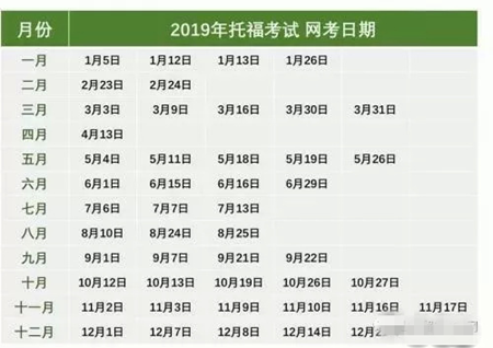 2019年托福考试时间表